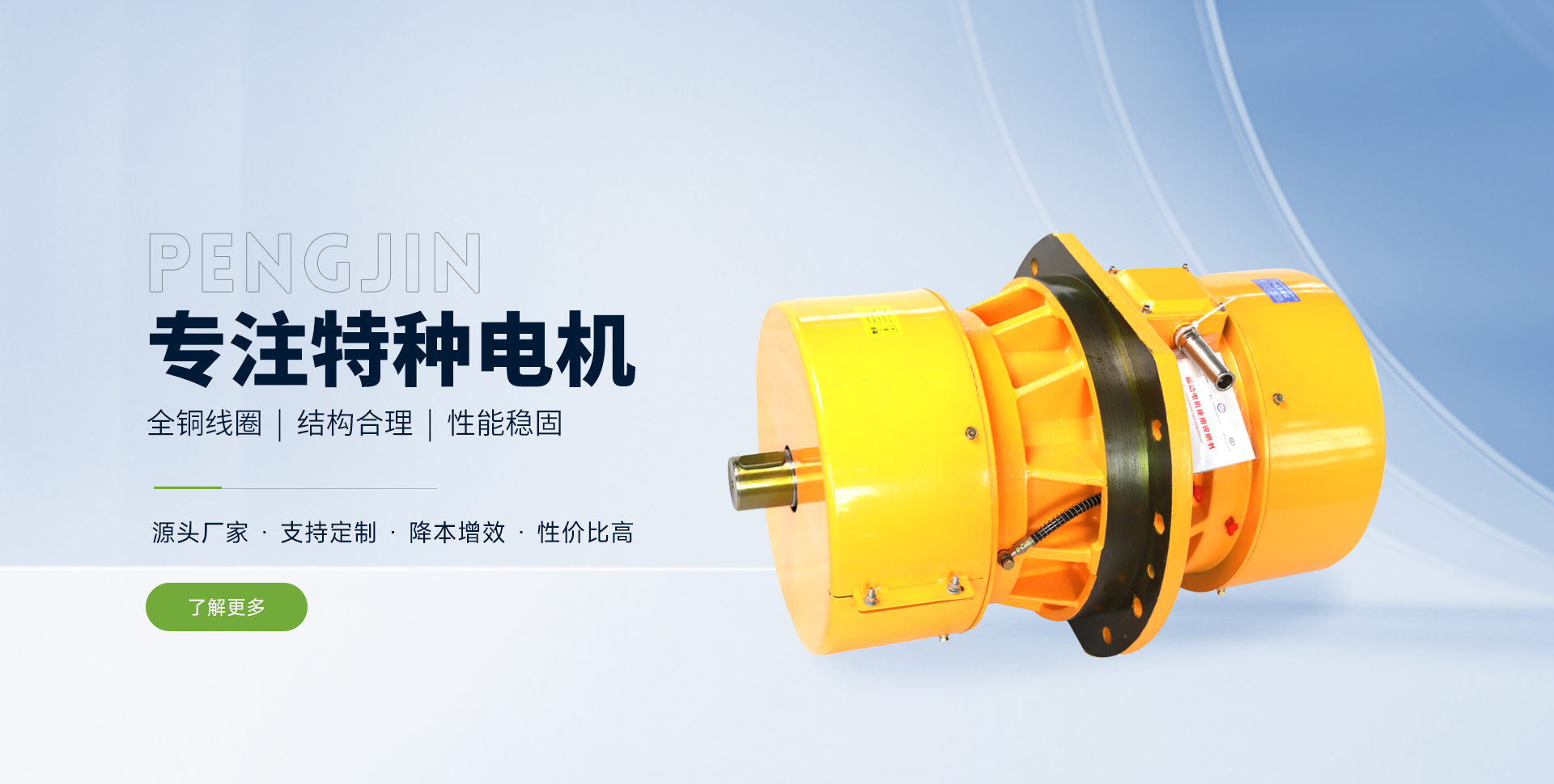 Company Profile新鄉(xiāng)市鵬錦特種電機(jī)有限公司是生產(chǎn)各類特種電機(jī)的制造商?! 」疚挥谥性貐^(qū)的河南省新鄉(xiāng)市關(guān)堤創(chuàng)業(yè)園區(qū)。緊鄰107國道,距京珠高速公路新鄉(xiāng)站僅3公里,交通極為便利。公司在工業(yè)園區(qū)內(nèi)的標(biāo)準(zhǔn)化廠房建有規(guī)范的電機(jī)制造、組裝、檢測生產(chǎn)流水線。同時配備了軸承裝配,數(shù)控繞線,真空絕緣處理,轉(zhuǎn)子動平衡調(diào)試,數(shù)控車床,電機(jī)出廠試驗(yàn)微機(jī)處理系統(tǒng)等的工藝裝備和制造檢測設(shè)備。目前公司生產(chǎn)的所有產(chǎn)品絕緣等級均為F級以上,提升了產(chǎn)品品質(zhì),有力貫徹了“在持續(xù)的質(zhì)量保證體系下,始終提供客戶滿意的產(chǎn)品和服務(wù)”的公司產(chǎn)品服務(wù)方針。公司產(chǎn)品質(zhì)量穩(wěn)定,歷年通過,行業(yè)、省市技術(shù)監(jiān)督局的產(chǎn)品質(zhì)量檢測。 公司秉承“科技求先,產(chǎn)品求實(shí),管理求真,服務(wù)求誠”的經(jīng)營理念,努力打造支意識靠前,技能高的高素質(zhì)團(tuán)隊;長期與國內(nèi)行業(yè)科研所和部分院校保持良好的合作關(guān)系,了解掌握行業(yè)動態(tài);在技術(shù)研究方面投入大量資金,堅持不地研制、引進(jìn)國內(nèi)外各類先進(jìn)適用的新型產(chǎn)品和制作工藝;針對各行業(yè)客戶的具體要求,量身設(shè)計,制造出工況適用,性能穩(wěn)定的專用電機(jī)。 我們的產(chǎn)品廣泛應(yīng)用于動力、控制、冶金、起重、鑄造、造紙、煤炭、醫(yī)藥、食品、礦山、線纜、印刷、包裝、環(huán)保工程及新能源等各領(lǐng)域的不同工業(yè)機(jī)械中,受到了客戶的認(rèn)可和好評。